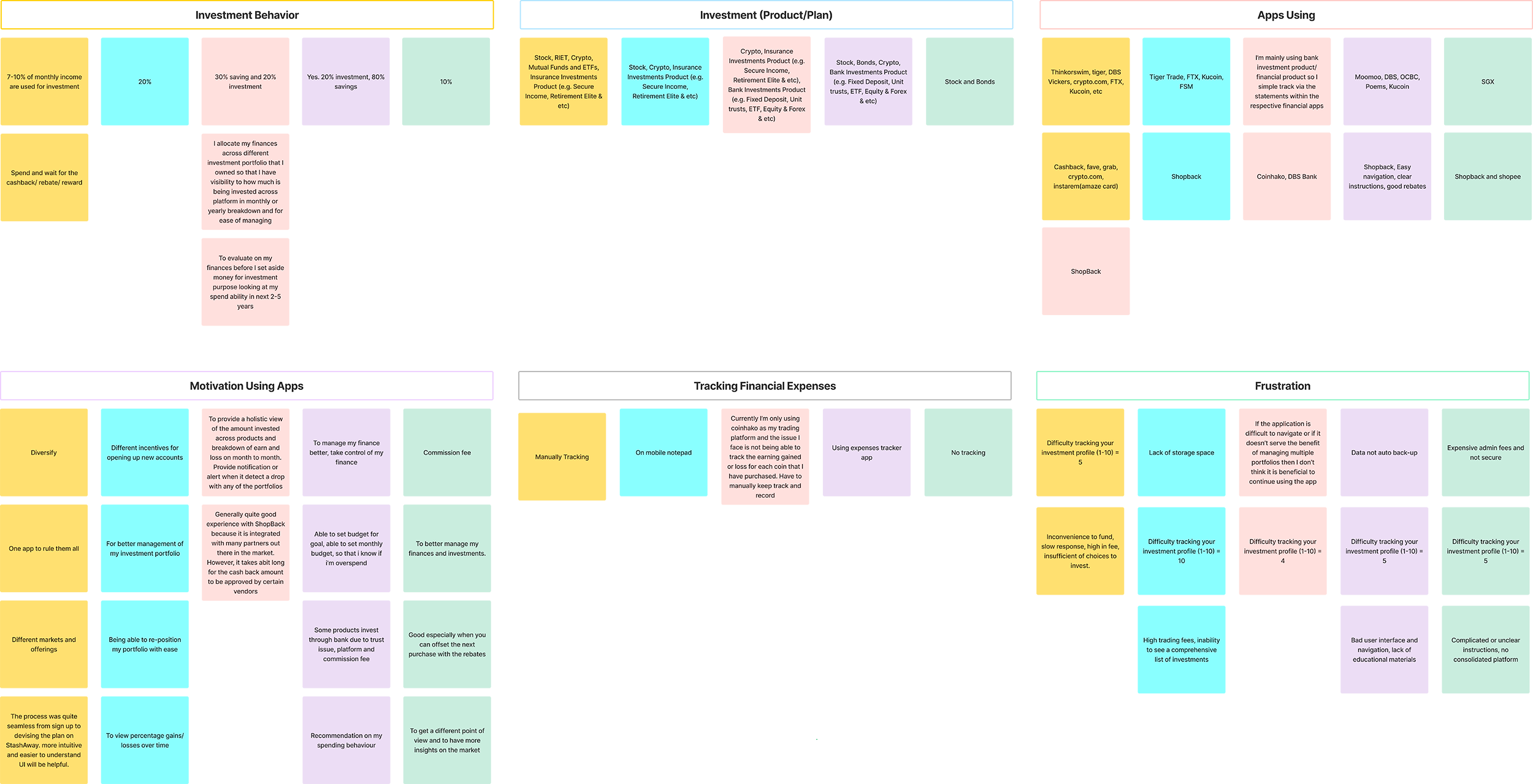 Nick has migrated to Singapore with her wife for more than 20 years. He is a tech-savvy guy, an experienced Art Director with a demonstrated history of working in the advertising agencies and media production industry, currently working in the insurance industry as a UX Design Lead. 10% of monthly income is used for investment. He uses multiple trading platforms as the platforms have different markets and offerings (e.g. stocks, REITS, crypto, mutual funds, ETFs, and insurance investment products).