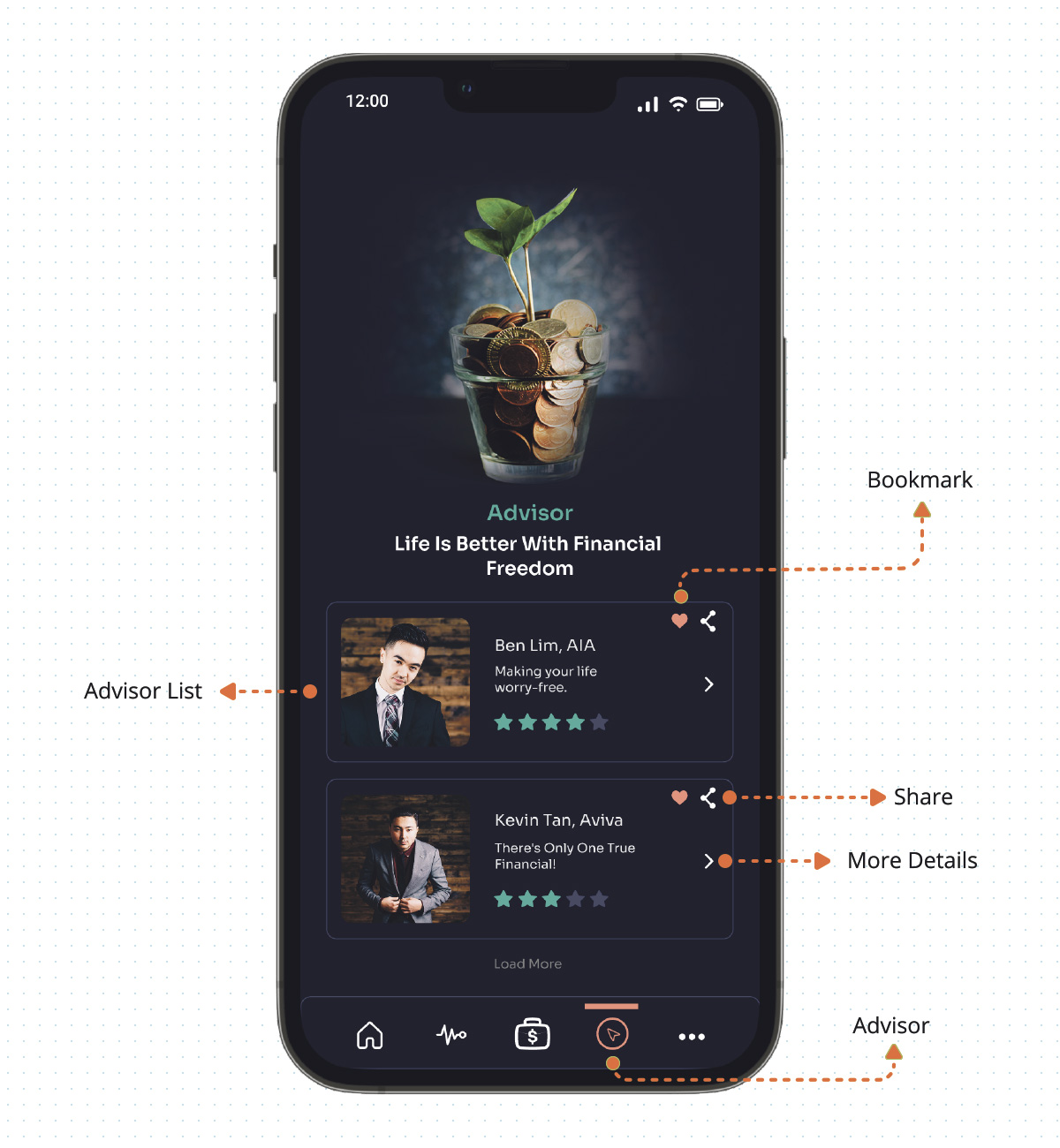 Solution: Users can share the advisor. A high chance to lead them to recommend the advisor to their friends and family can increase the number of sign-ups, platform usage, and traffic.