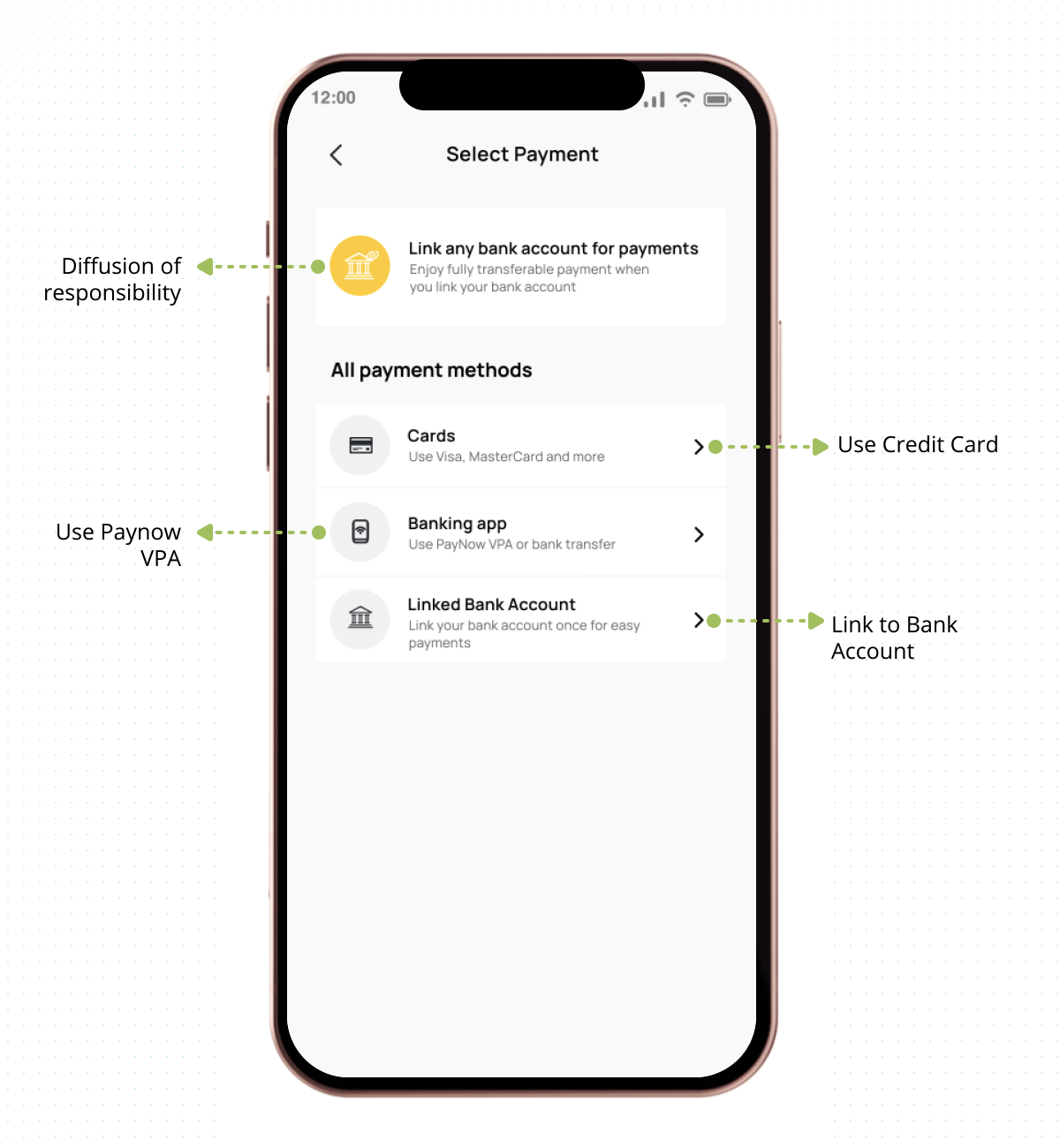 High chance to lead users to link their bank account to make payment.