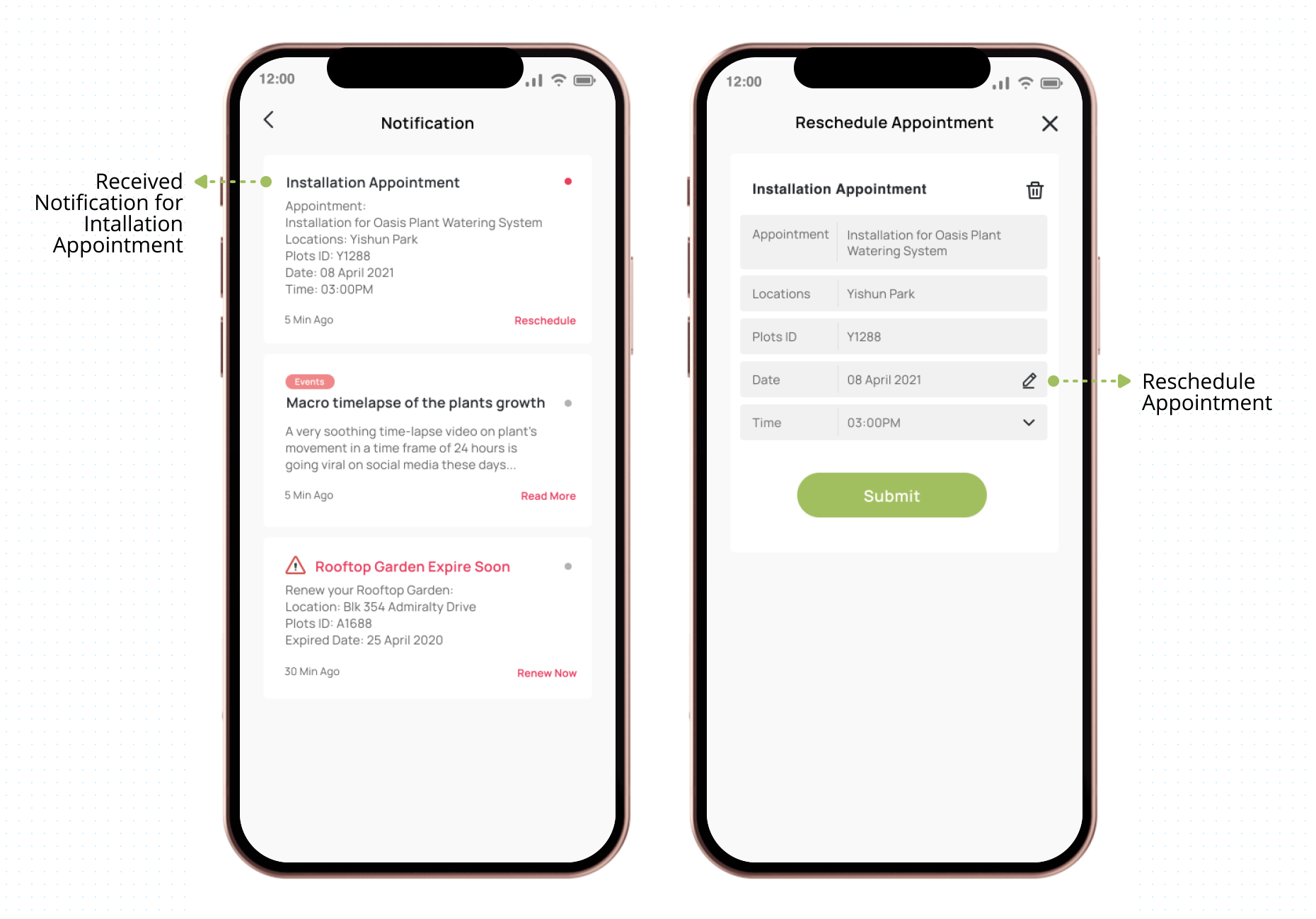 Solution: Allow consumers to reschedule appointments for Oasis Plant Watering System.